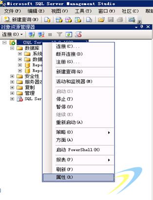 (1)打開(kāi)數(shù)據(jù)庫(kù),用本地帳戶登錄,右擊第一個(gè)選項(xiàng),選擇屬性: